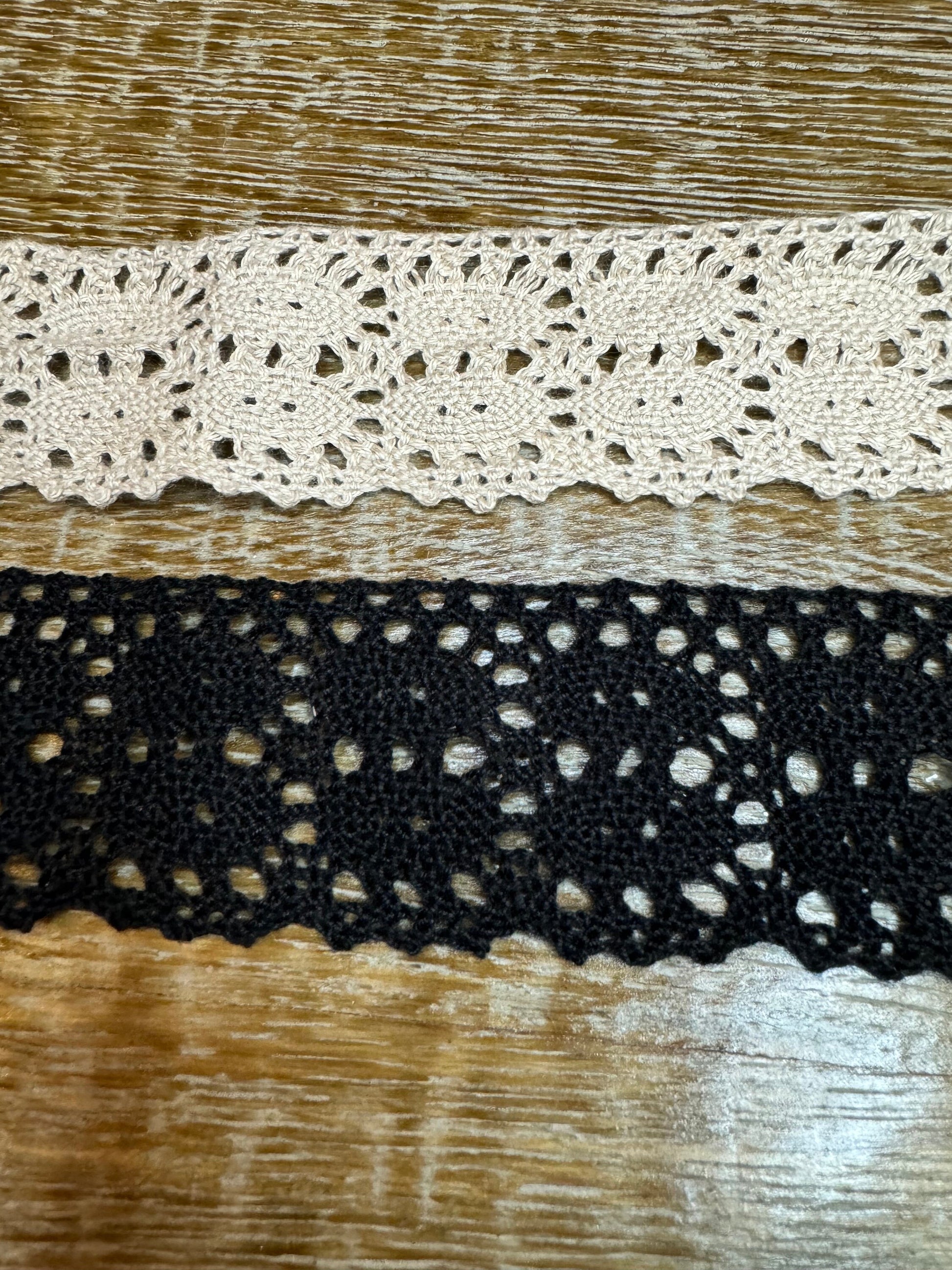 1.5” Wide Vintage Style Cotton Lace Trim, Black, Beige, Lace, 4cm Wide, Crafts, Furnishings, Clothing, Bags, Cards