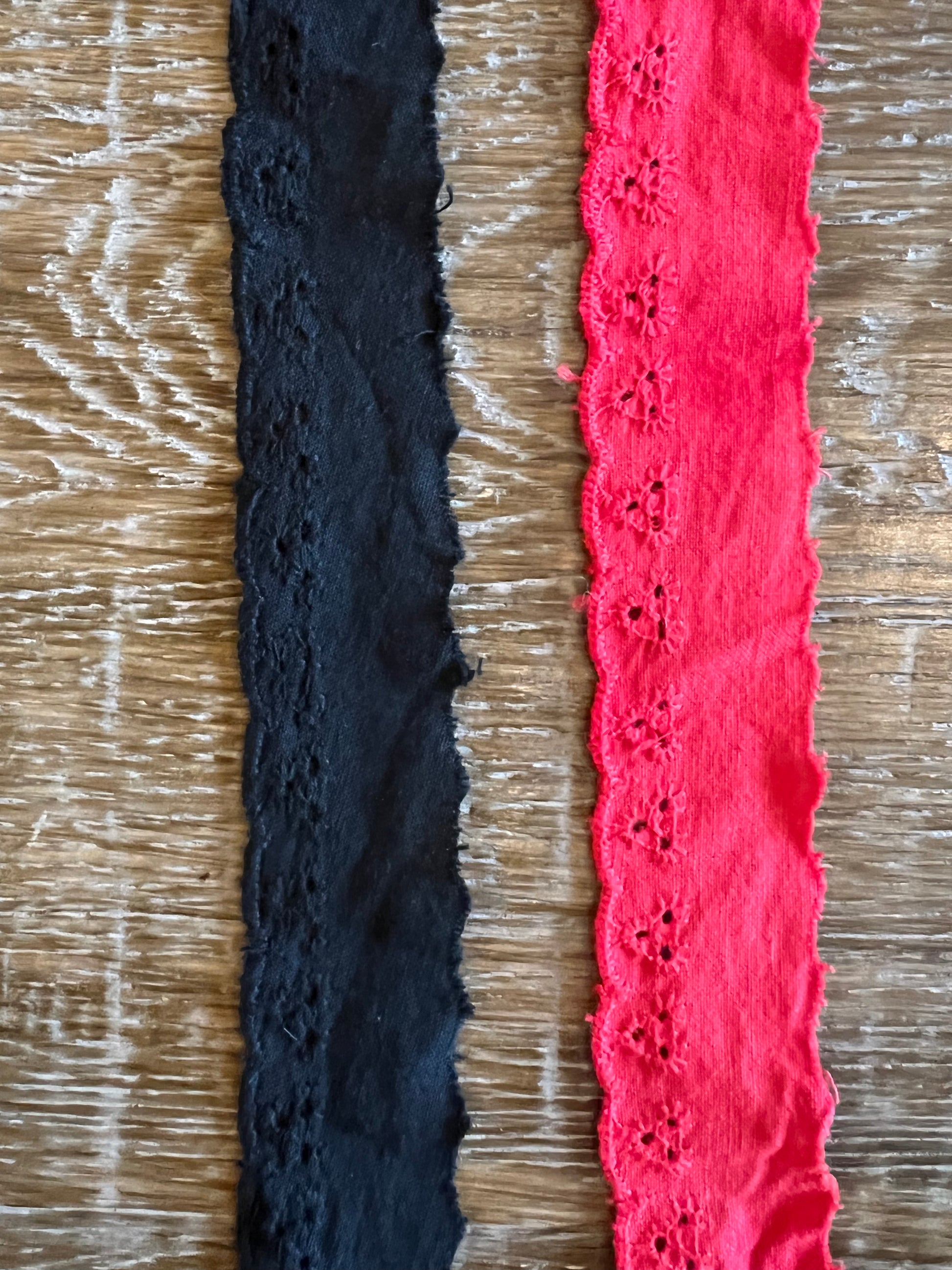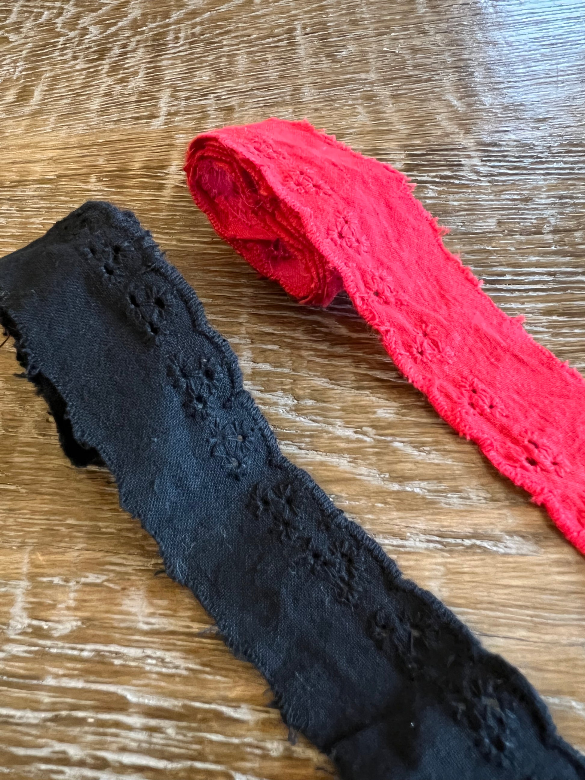 Soft, beautiful broderie anglaise lace in red and black