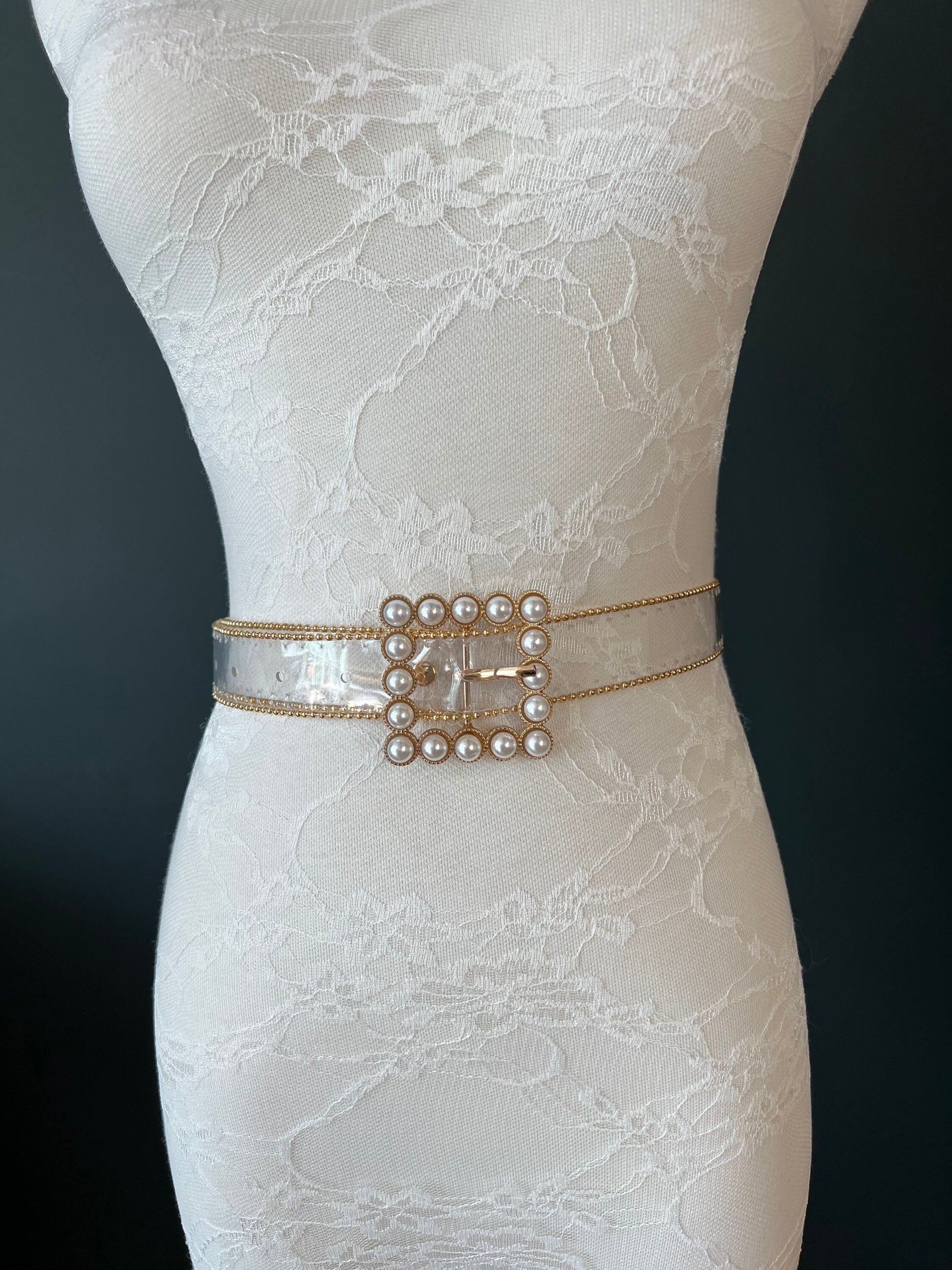 Belts, Transparent Belt, Clear Belt, Pearl Buckle Belt, Swimwear, Resort, Rhinestone Belts, FAN Fashion, UK Size 8-14