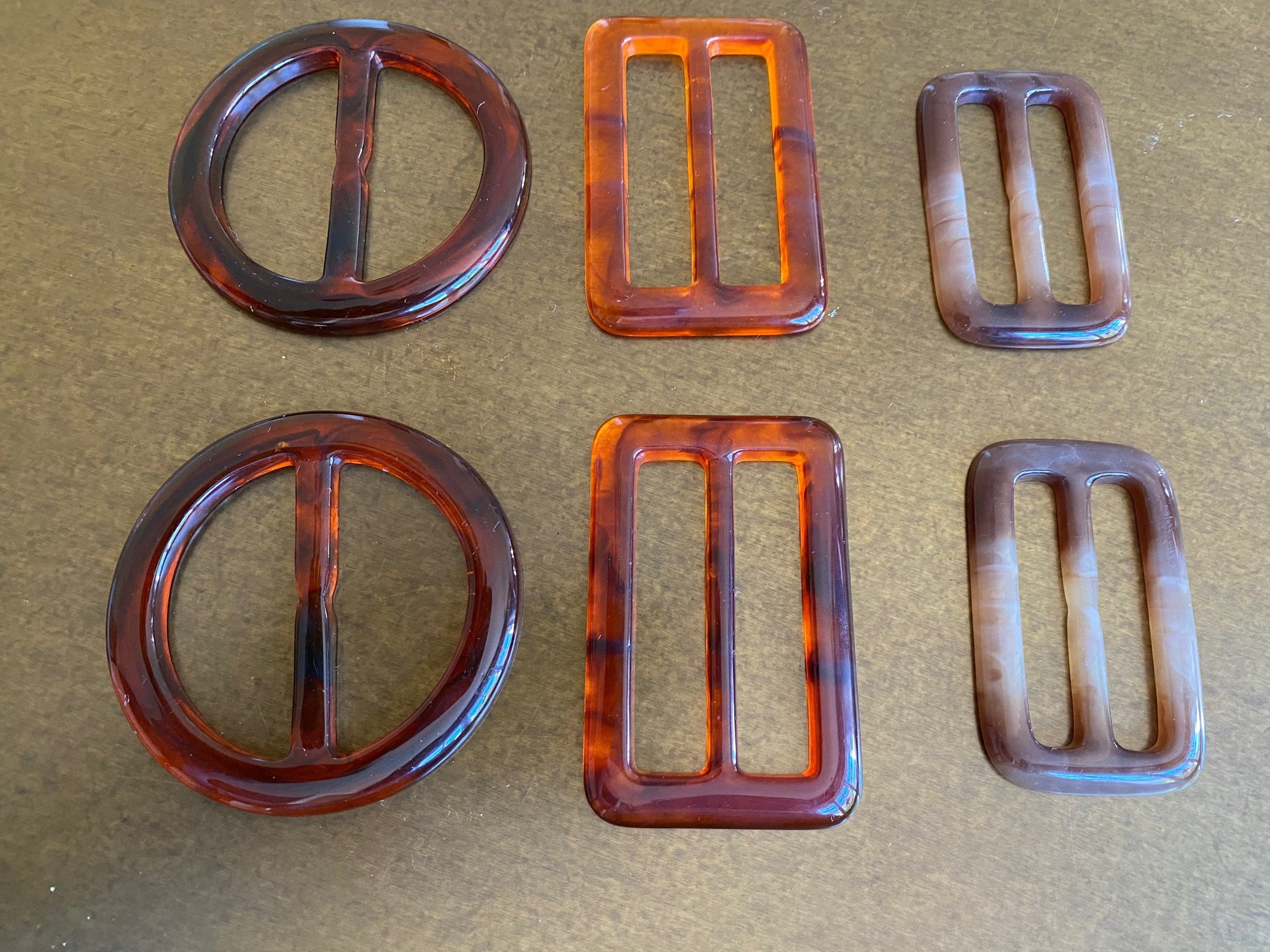 Buckles, Tortoiseshell Buckles, Horn Buckles, Round, Rectangle, 2” Bar, 1.5” bar