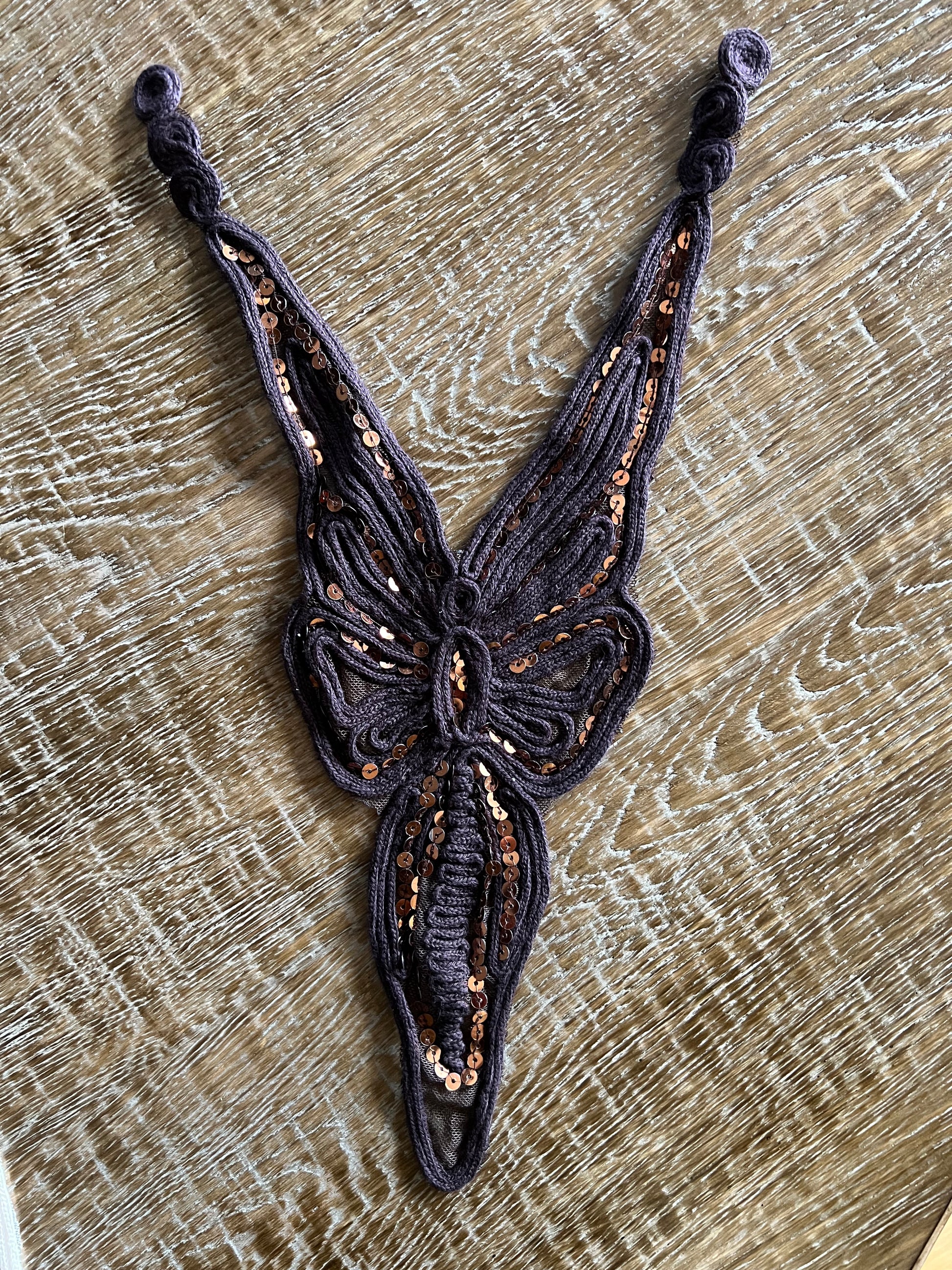 Crochet and sequin neck trim beautifully designed to enhance any neck line
