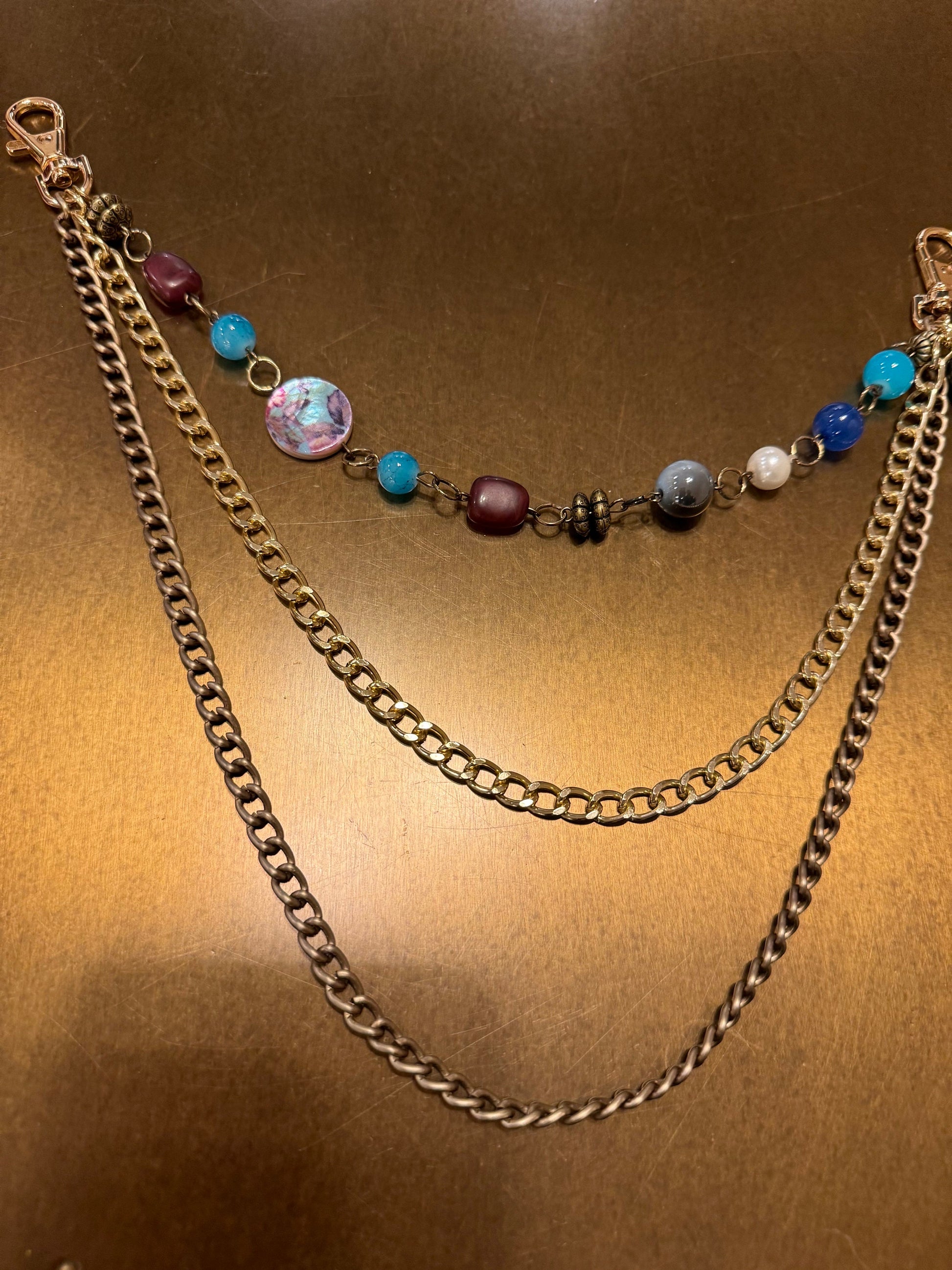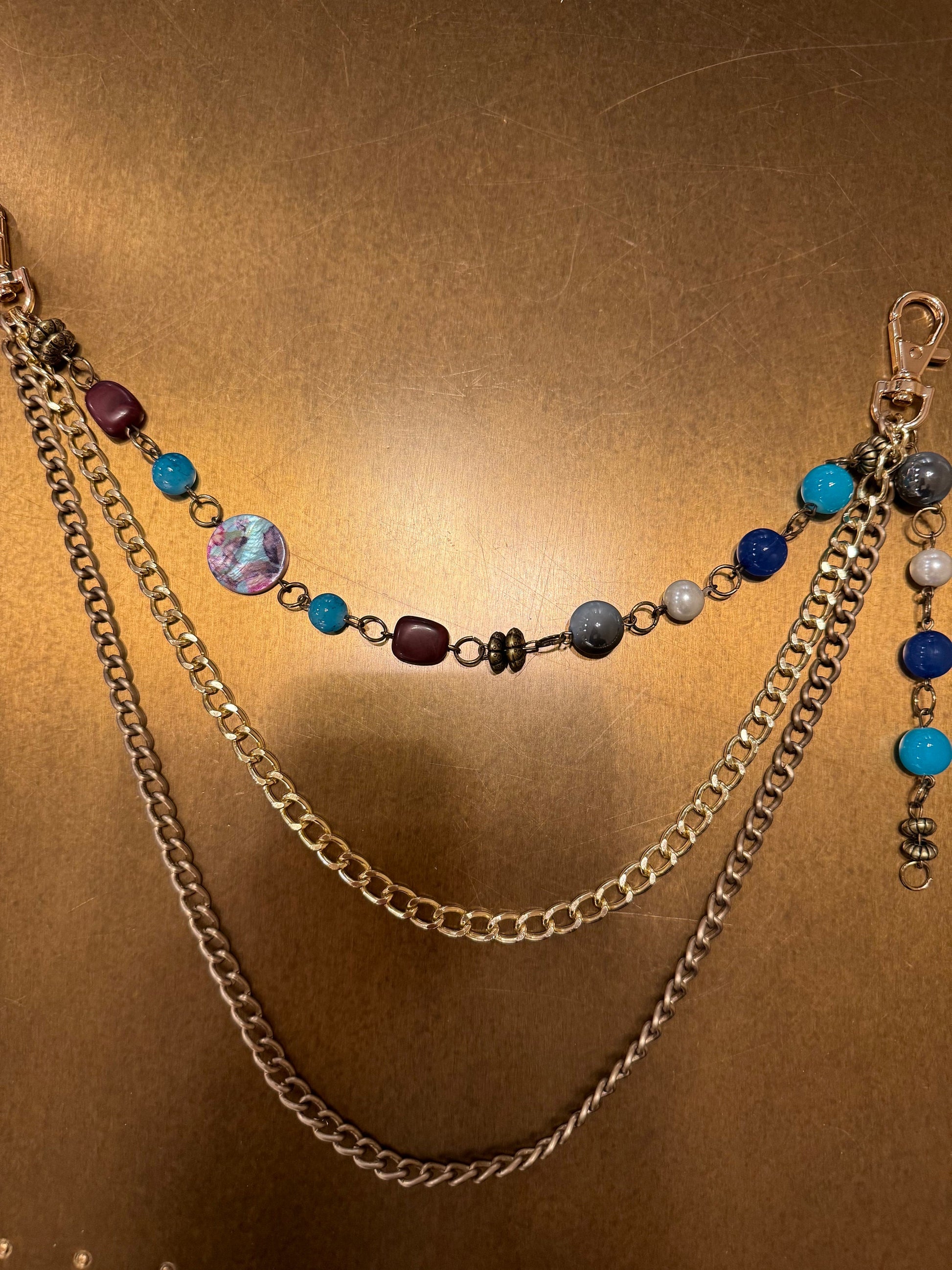 Layered Jeans Chains, 3 size selection, Turquoise, Pearl, Gold Beads