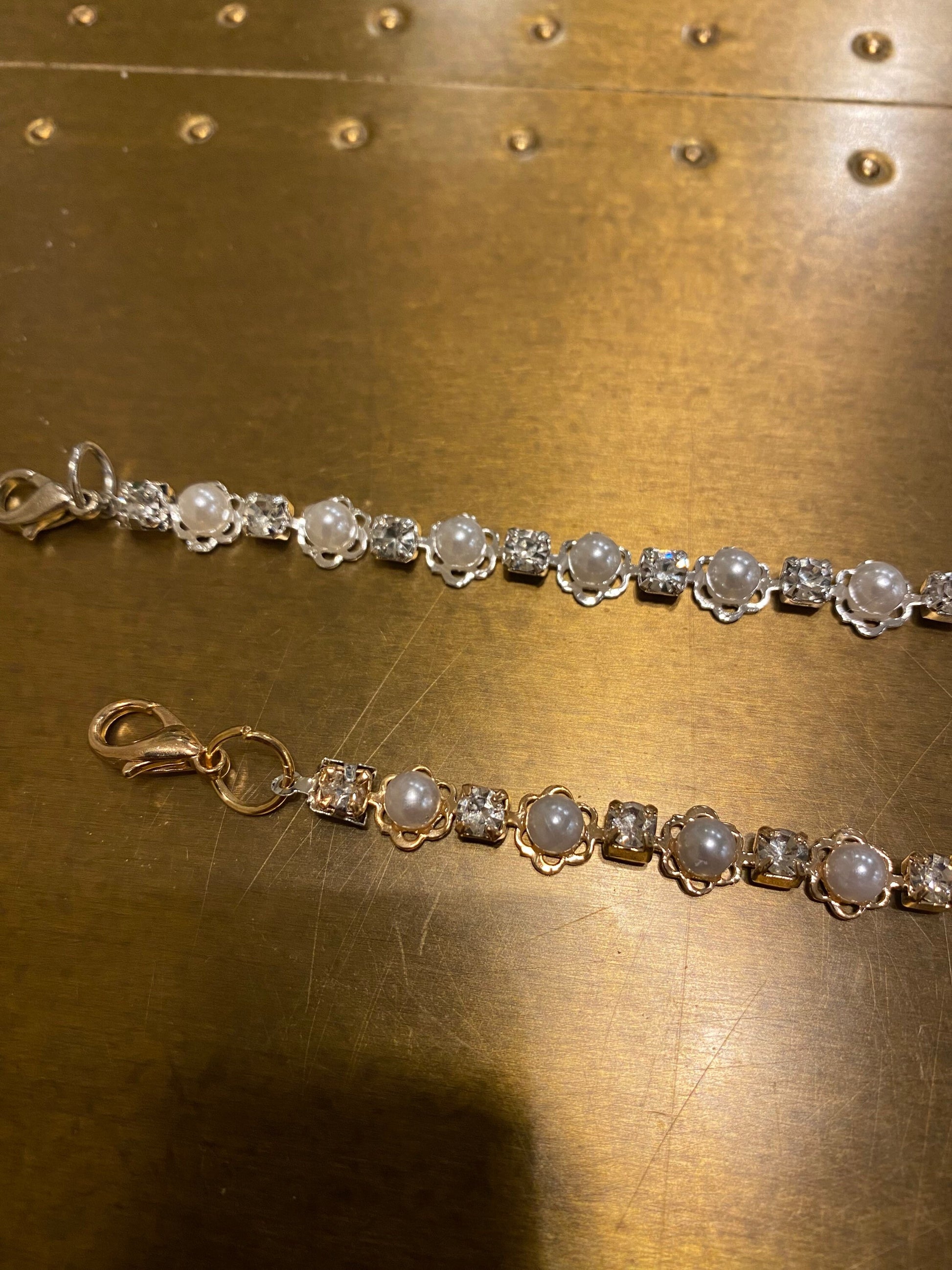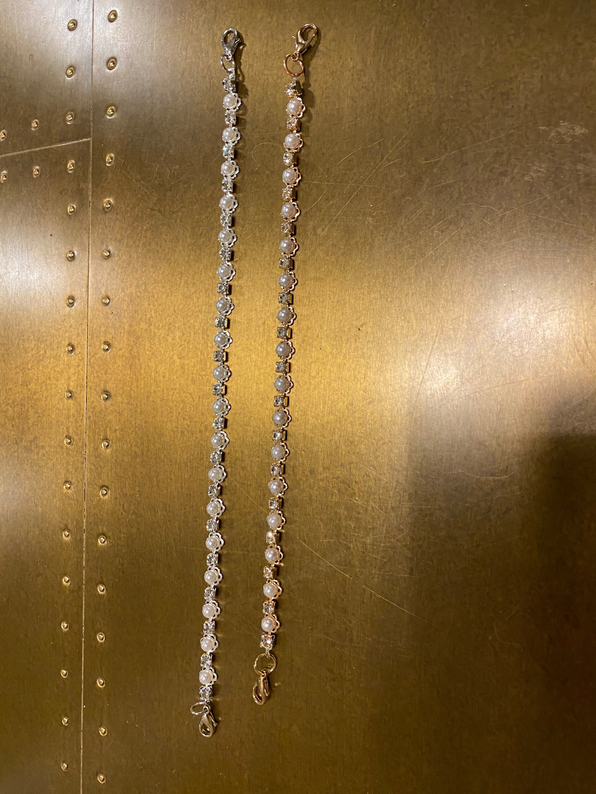Pearl Diamanté Strap, 3mm Rhinestones, Very High Quality, 100+ sizes, Rhinestone Strap, chain strap, Silver, Gold, Smooth Base