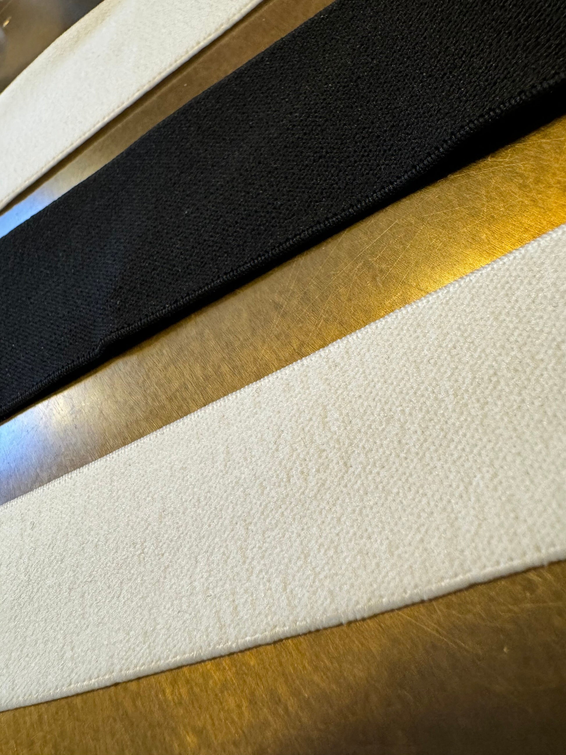 4cm Wide Black and White options. 5cm Wide Black and White options. If you are making high end clothing, couture collections, belts, this elastic is perfect. Very high quality, strong & smooth.