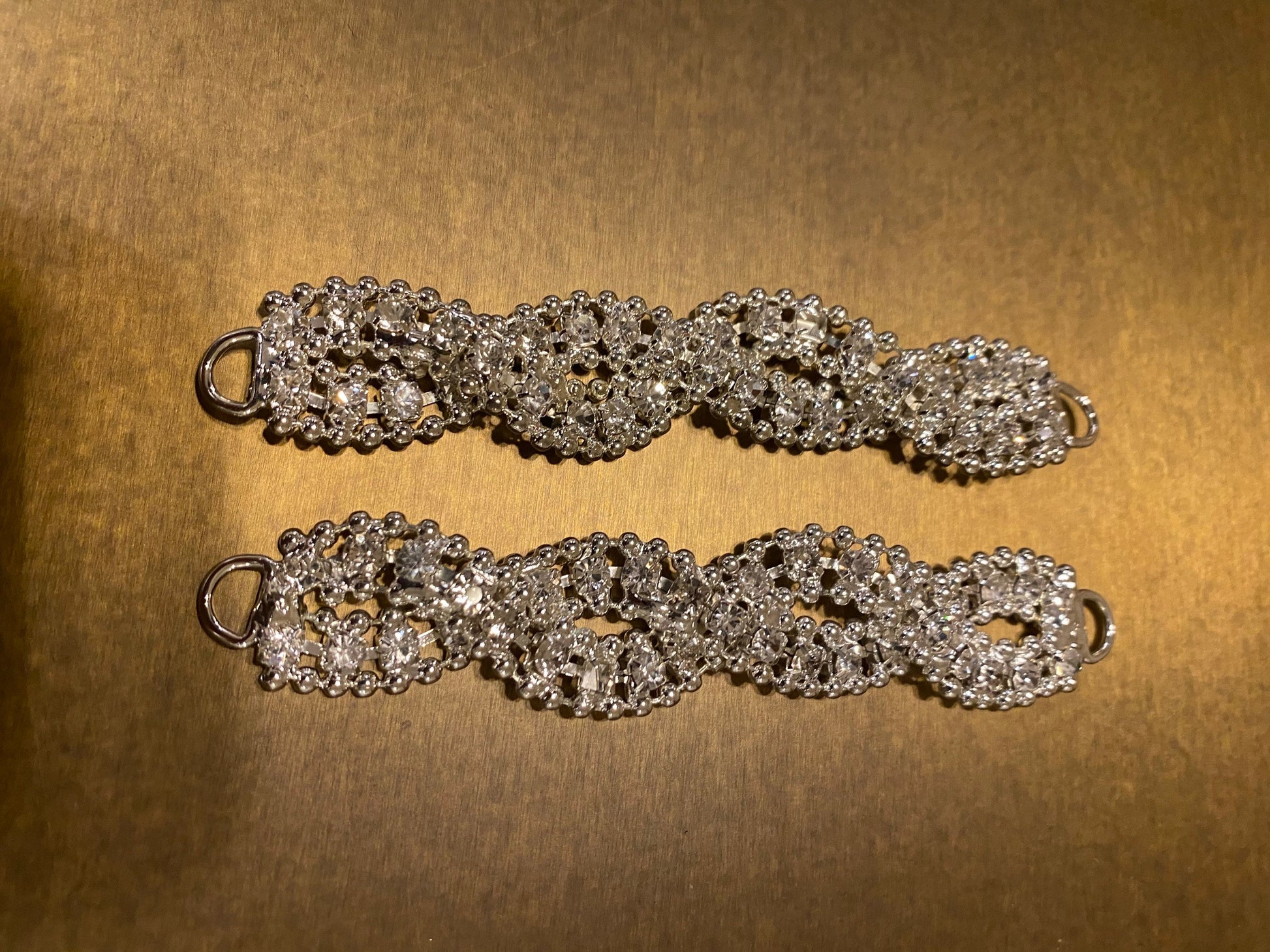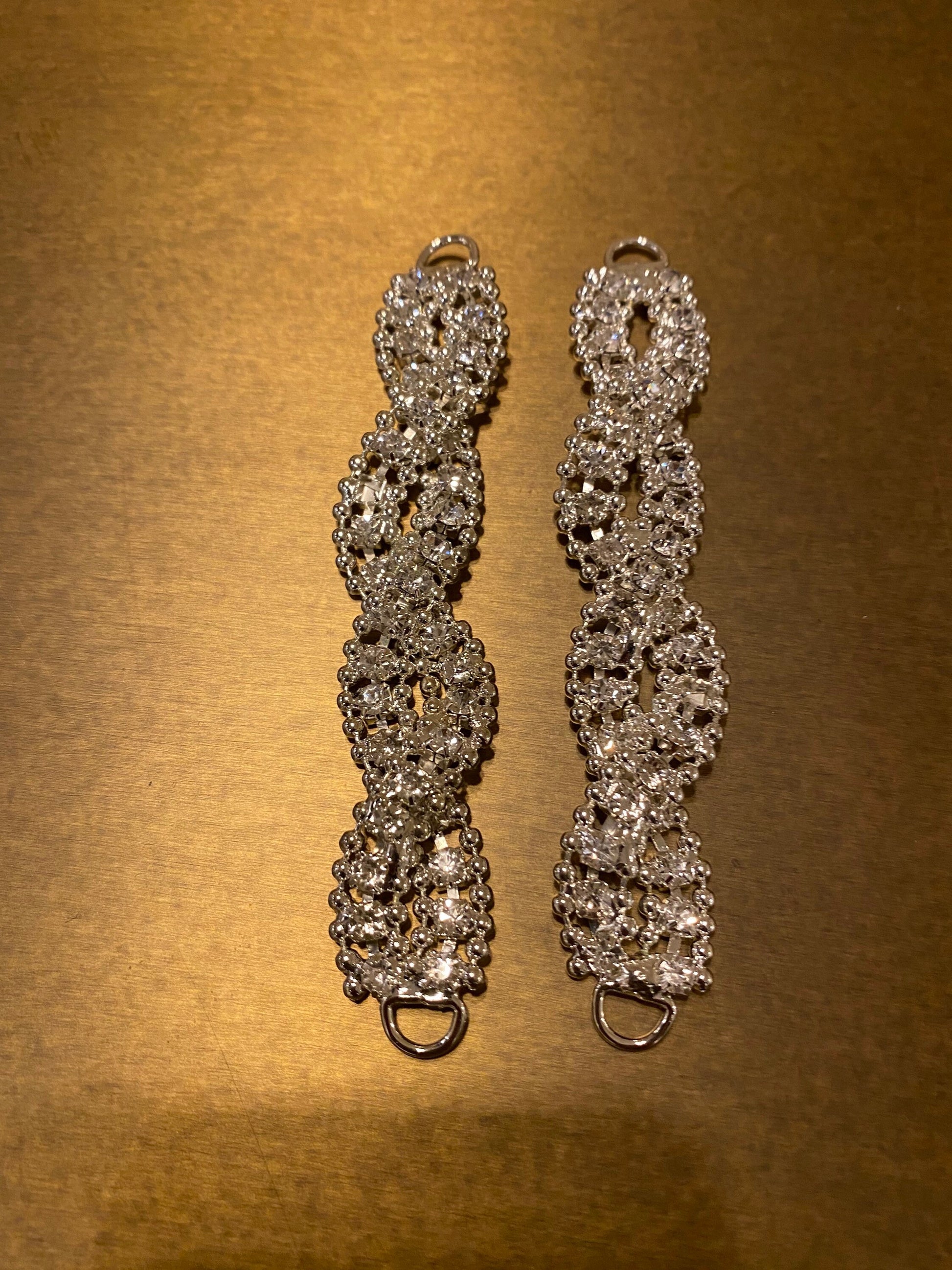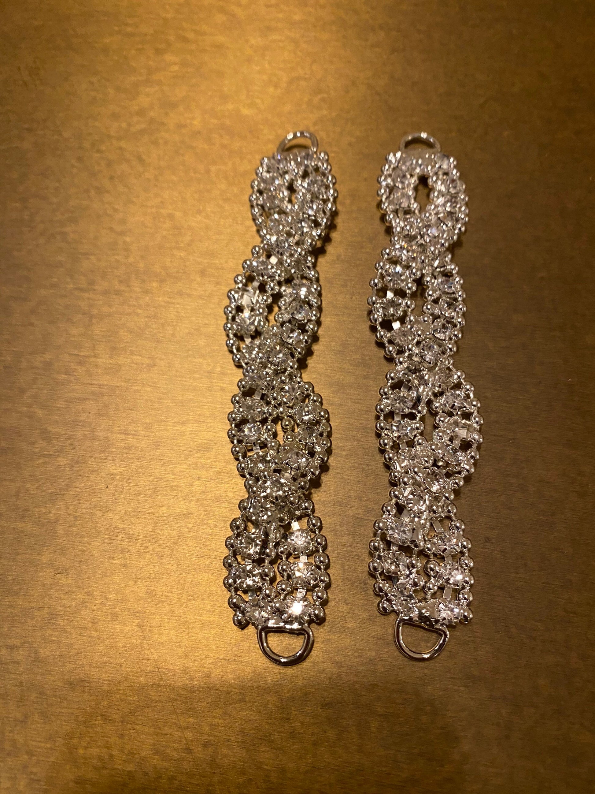 An unusual Rhinestone Buckle. The buckle has some flexibility which make its use versatile across many product ranges. From clothing, crafts, bags, bridal, weddings, swimwear & underwear. This buckle is handmade and high quality.