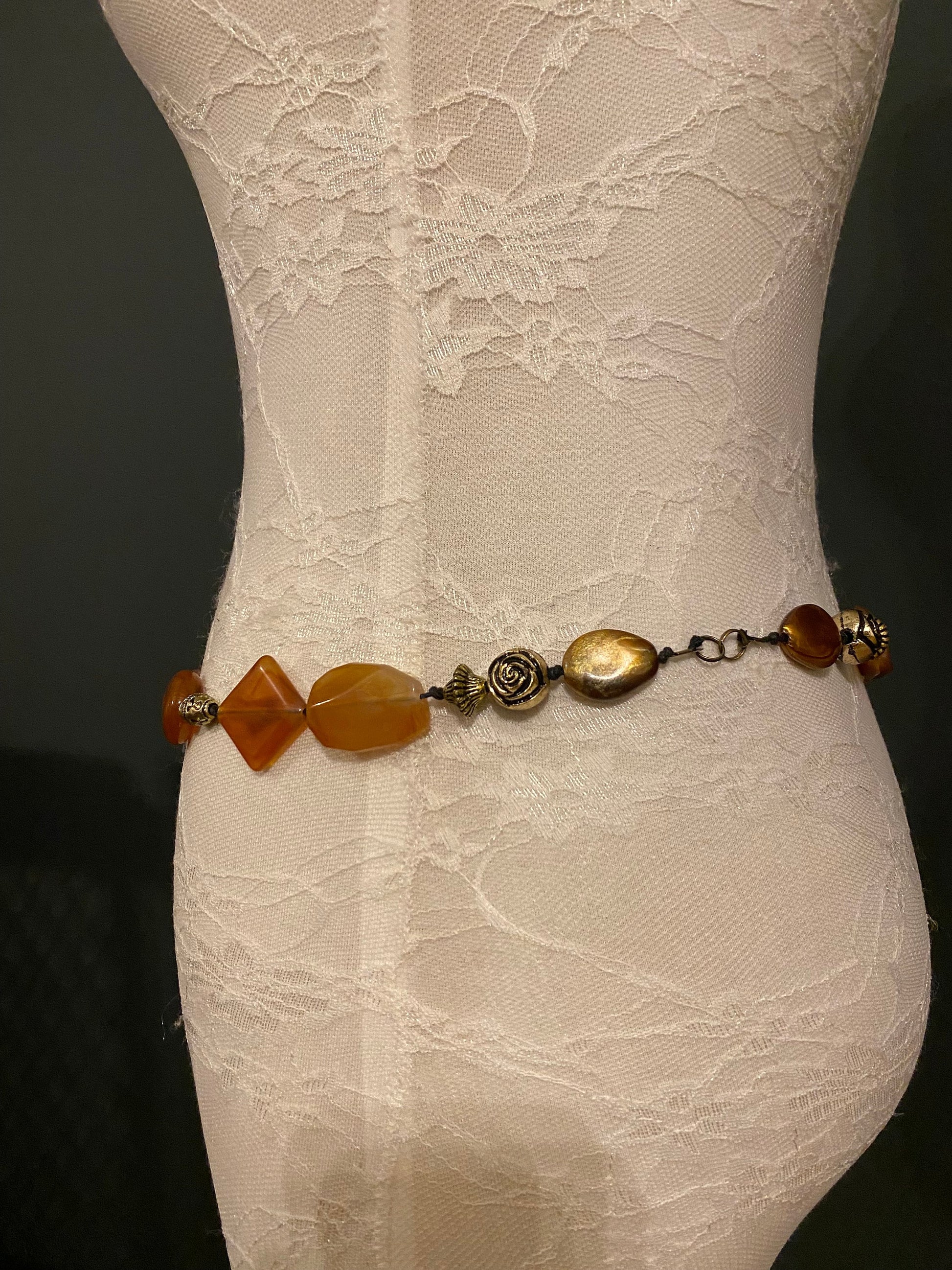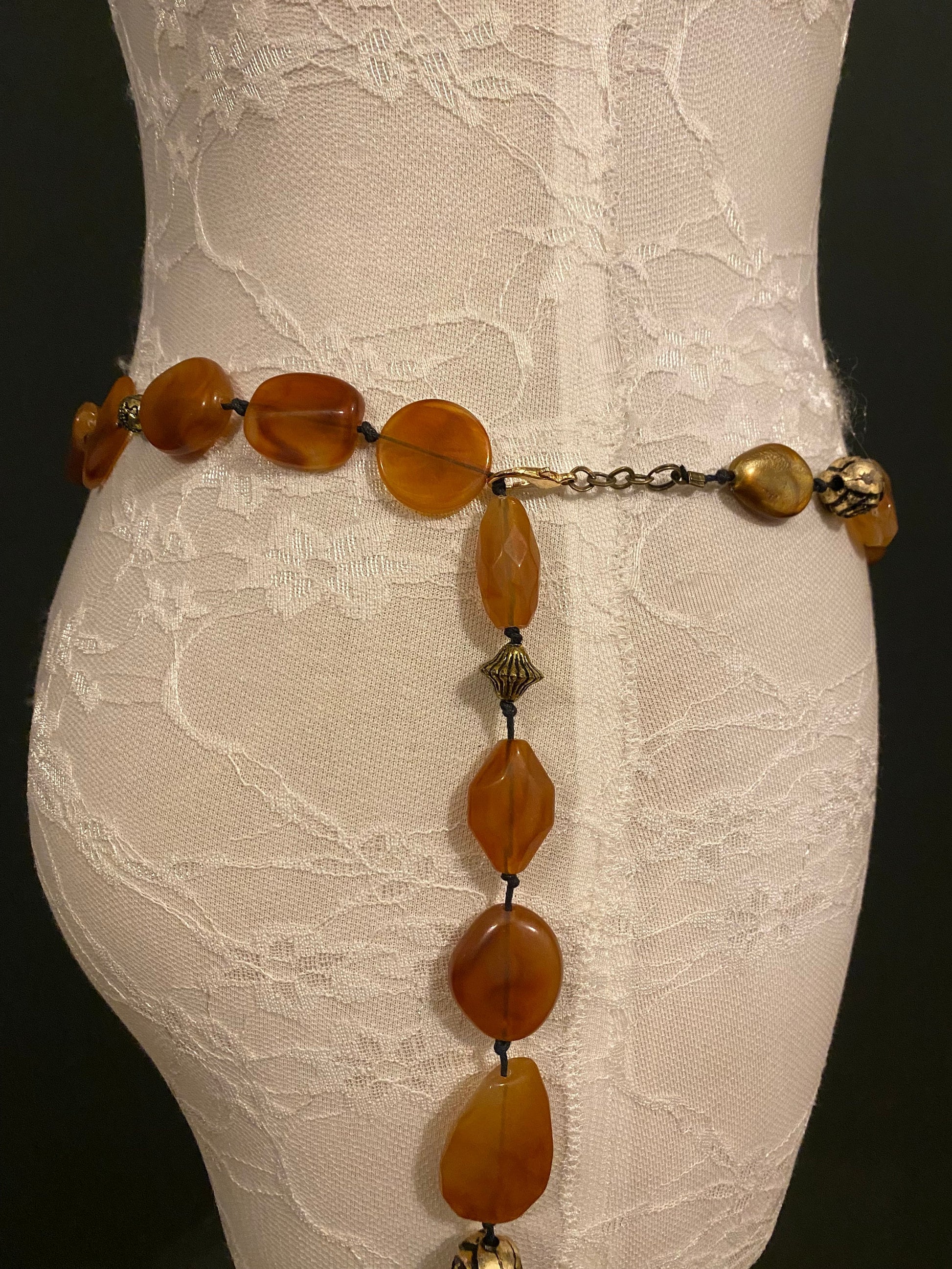 X-Long Belt, Marble Beads Belt, Antique Brass Chain Belt, Boho belt, Beads, Marble Beads, Brass Beads, Fashion Belt, Vintage